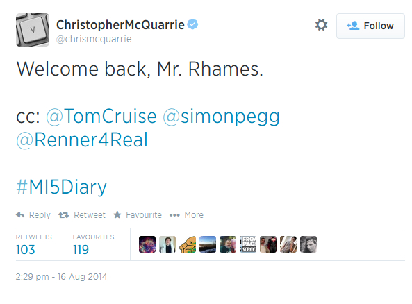 Earlier today writer/director Christopher McQuarrie took to twitter and posted up the above message, officially acknowledging the return of actor Ving Rhames back into the fold for Mission: Impossible 5.
