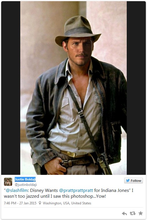 Having entertained the world with his recent outing as Star Lord I can think of no other actor so perfectly suited to carry on the character of Dr Jones, in the same vein as Harrison Ford. If you’re having difficulty picturing the actor in fedora, scuffed leather jacket and action slacks check the pic above by Justin Boldaji on twitter. Deadline have more on the rumour at this stage.