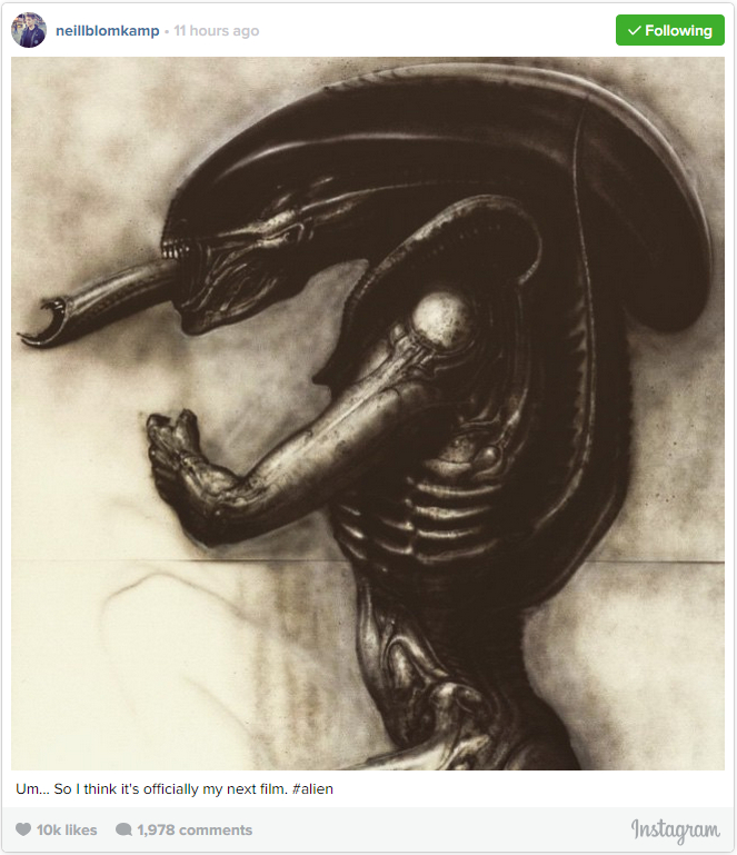 Film director Neill Blomkamp, (District 9, Elysium, Chappie), recently uploaded various pieces of concept art for a secret Alien project he was working on for Fox. Unfortunately the project was cancelled but following the amount of positive attention the art received across the Internet a real desire by fans to see this movie started to emerge. Now it seems Blomkamp has signed a new deal with Fox to bring his own installment of the Alien franchise to the big screen with the director announcing on Instagram the exciting news.